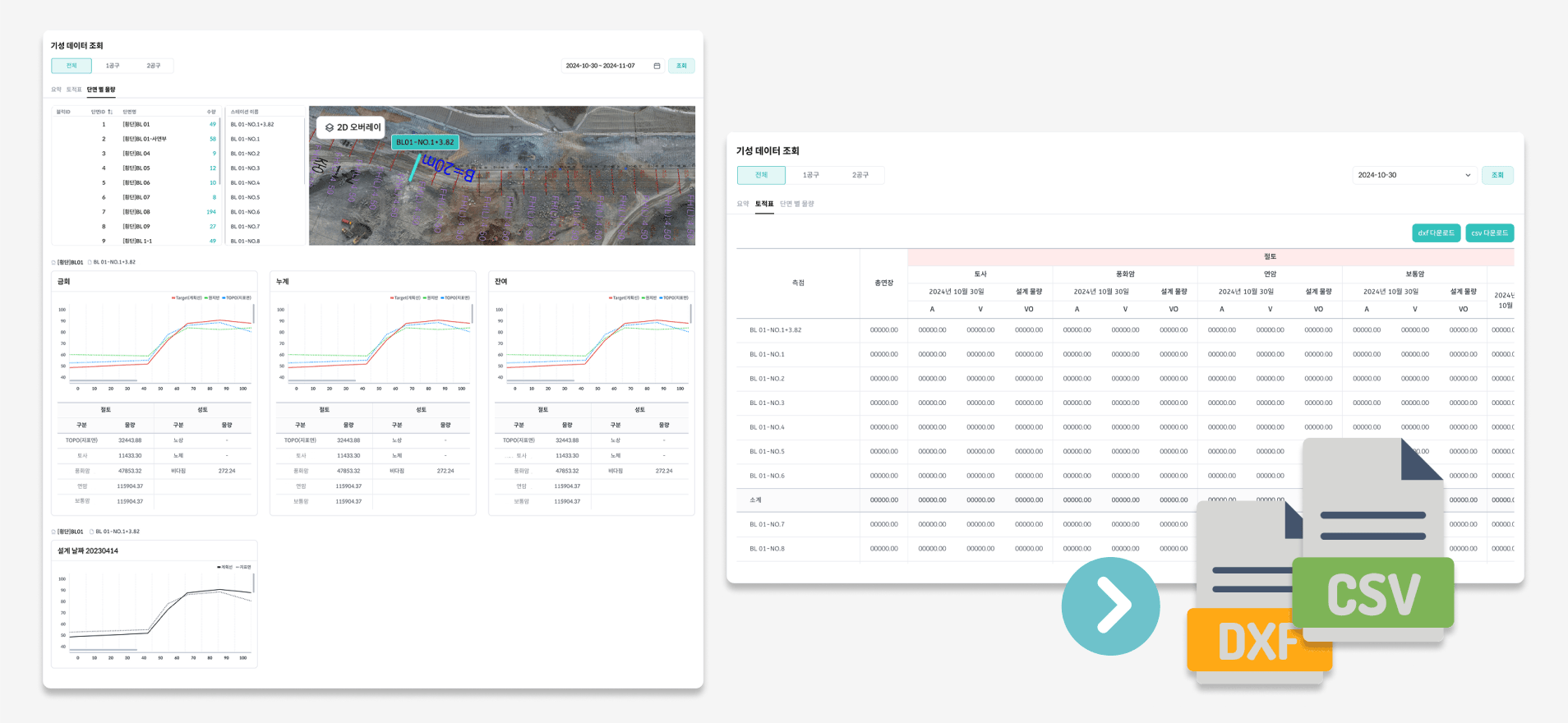 04. Provides monthly earthwork volume reports and supports CAD-based cross-section file exports.