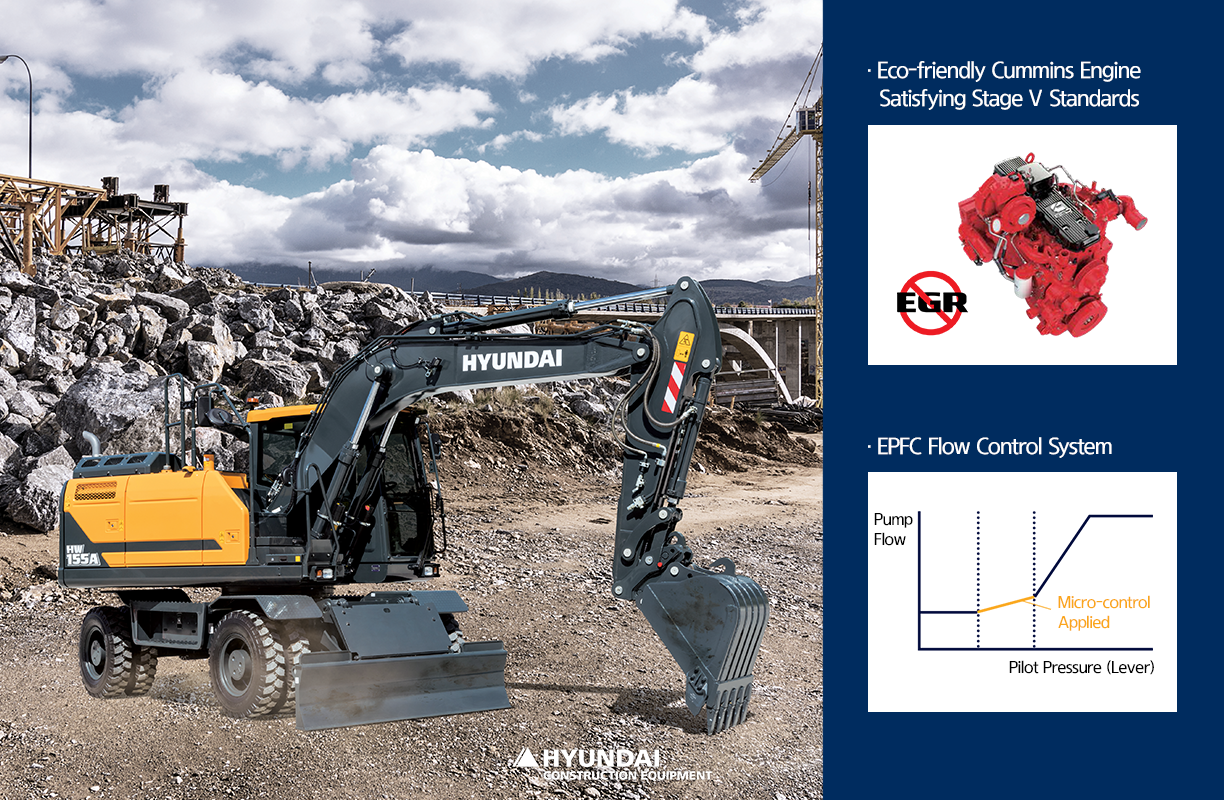 Meet Hyundai Construction Equipment's brand-new machines, the 2022 HW155A and HW165A. Following its preceding model HW145+, the new machines are equipped with an eco-friendly engine that satisfies new, more strict emission standards and is more convenient and durable, reflecting recommendations and opinions from the customers.