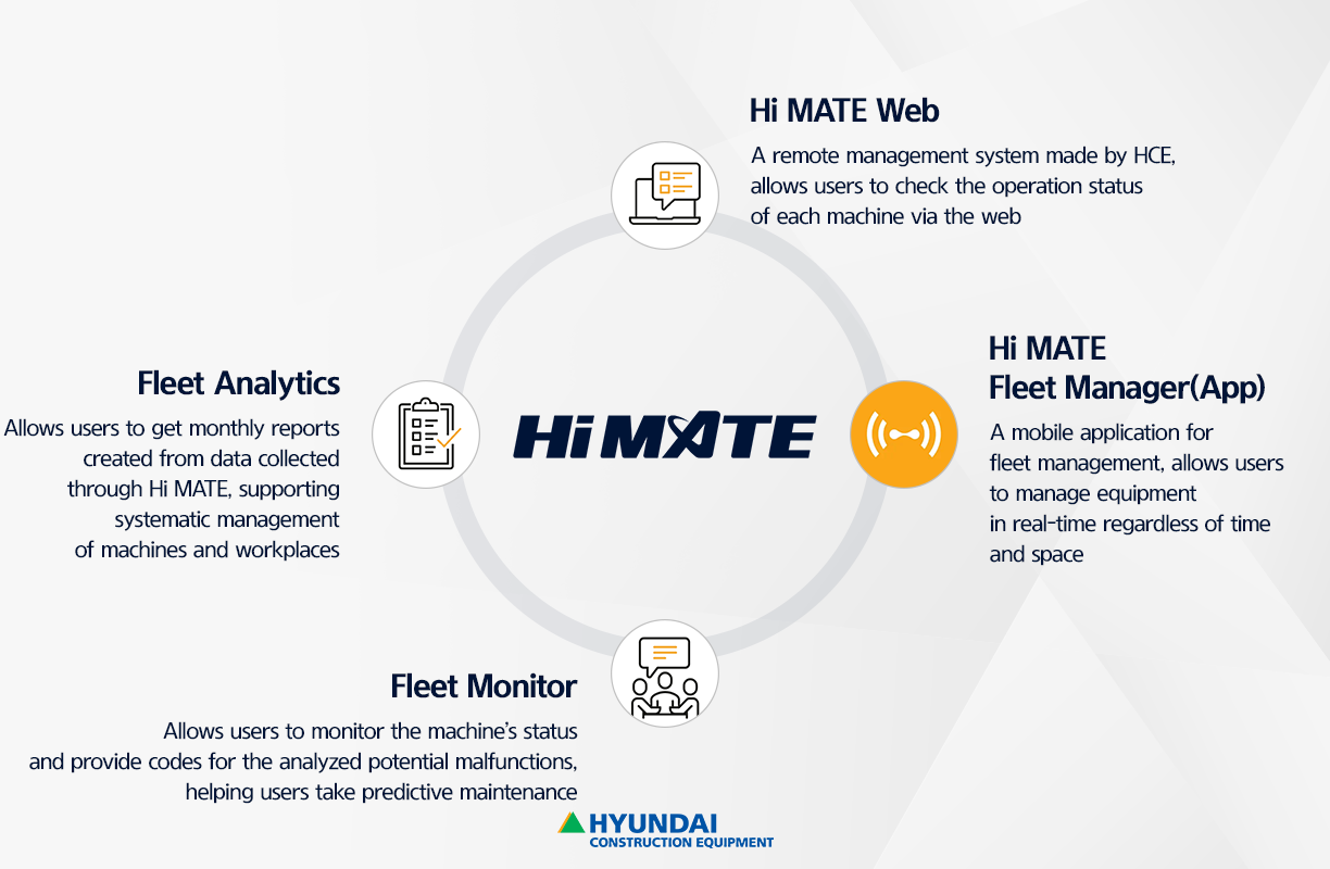 The app also provides a real-time location tracking feature and notifications to report important events such as malfunctions and maintenance status. Care for your machines more conveniently on your phone, wherever and whenever. You can download Hi MATE Fleet Manager on iOS and Android App Stores.