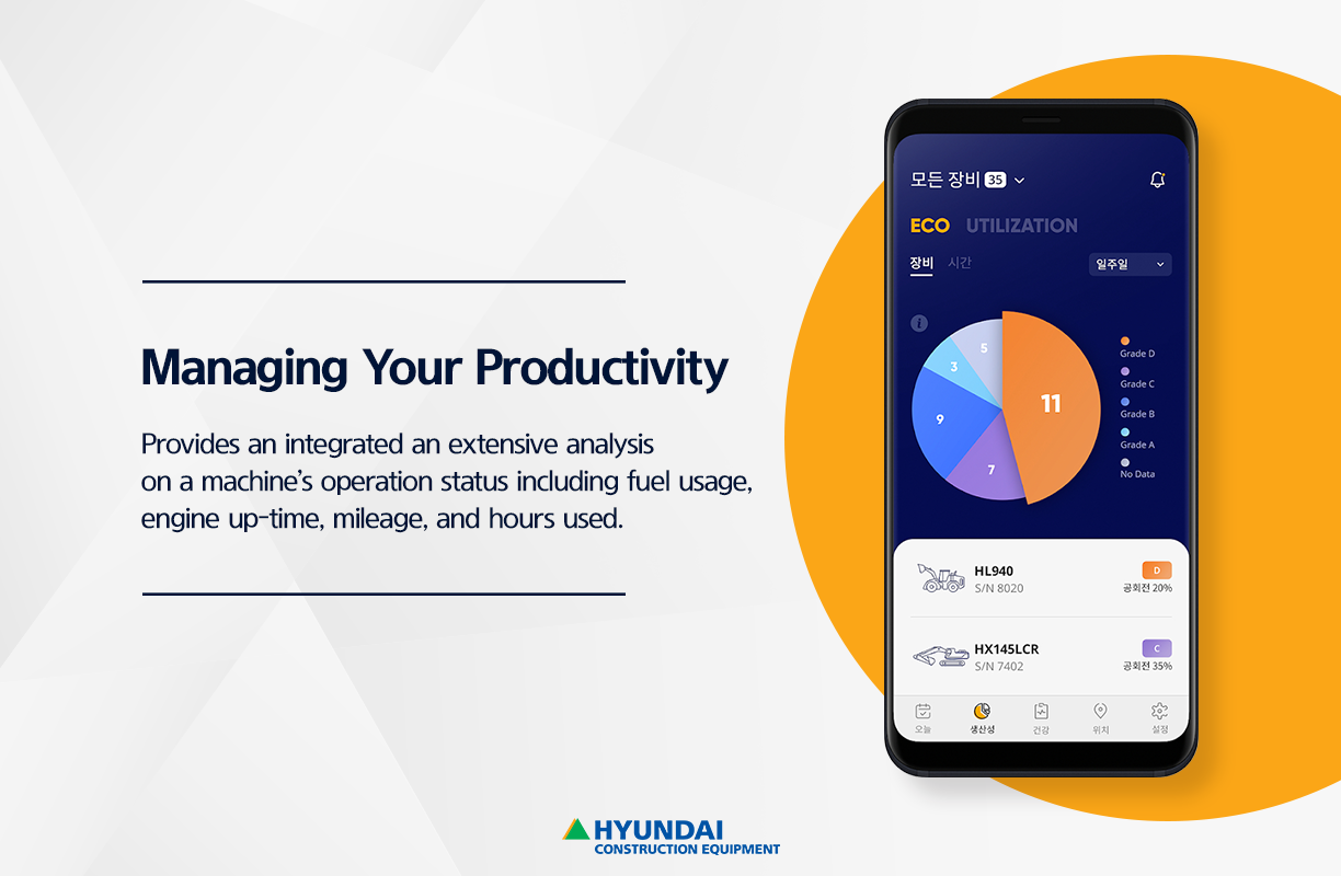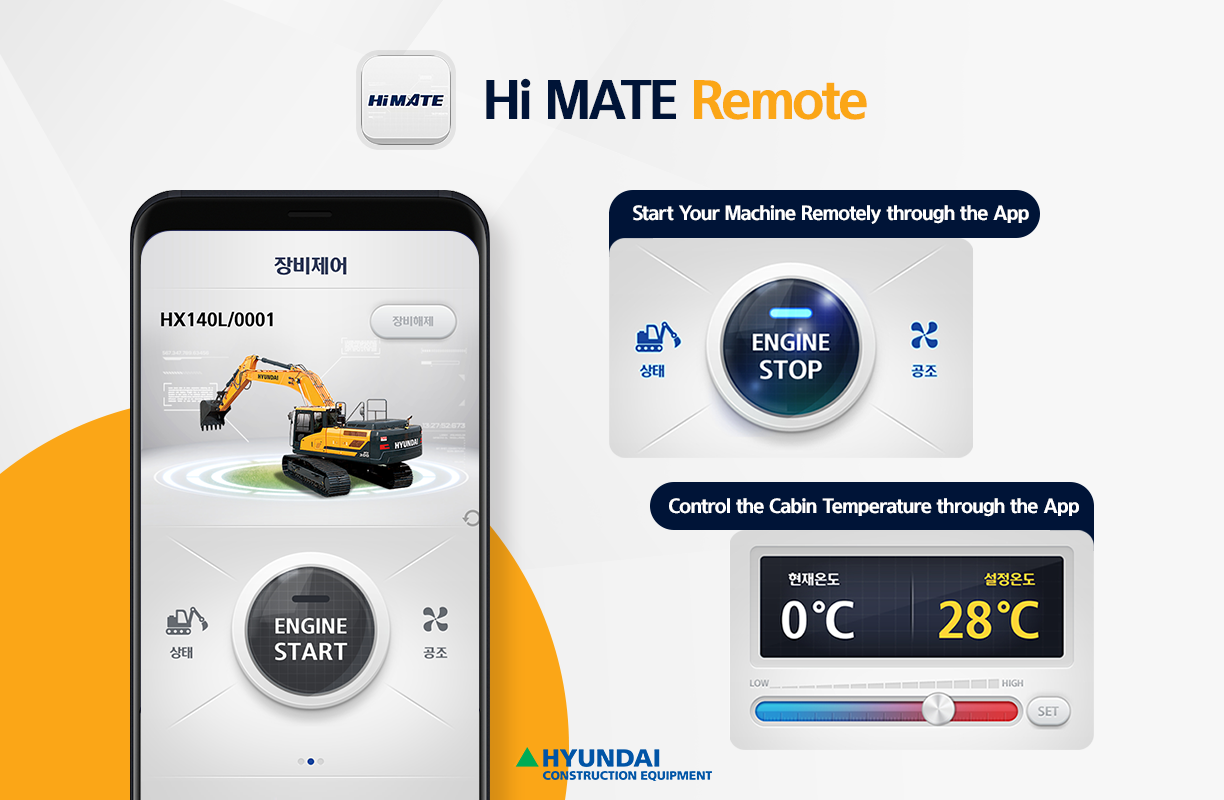 Hi MATE is a smart service that includes Hyundai Construction Equipment’s clouding service, big data, and AI technologies. It not only allows the users to operate their machines more conveniently and efficiently, but it also enhances the productivity and durability of the machines at work. We expect Hi MATE could be the leader in making construction sites smarter. The application is the result of HCE’s consideration for the customers’ comfort, consideration of the way to manage the machines more efficiently and more conveniently. Give Hi MATE a try, and experience our dedication to making your work more convenient.