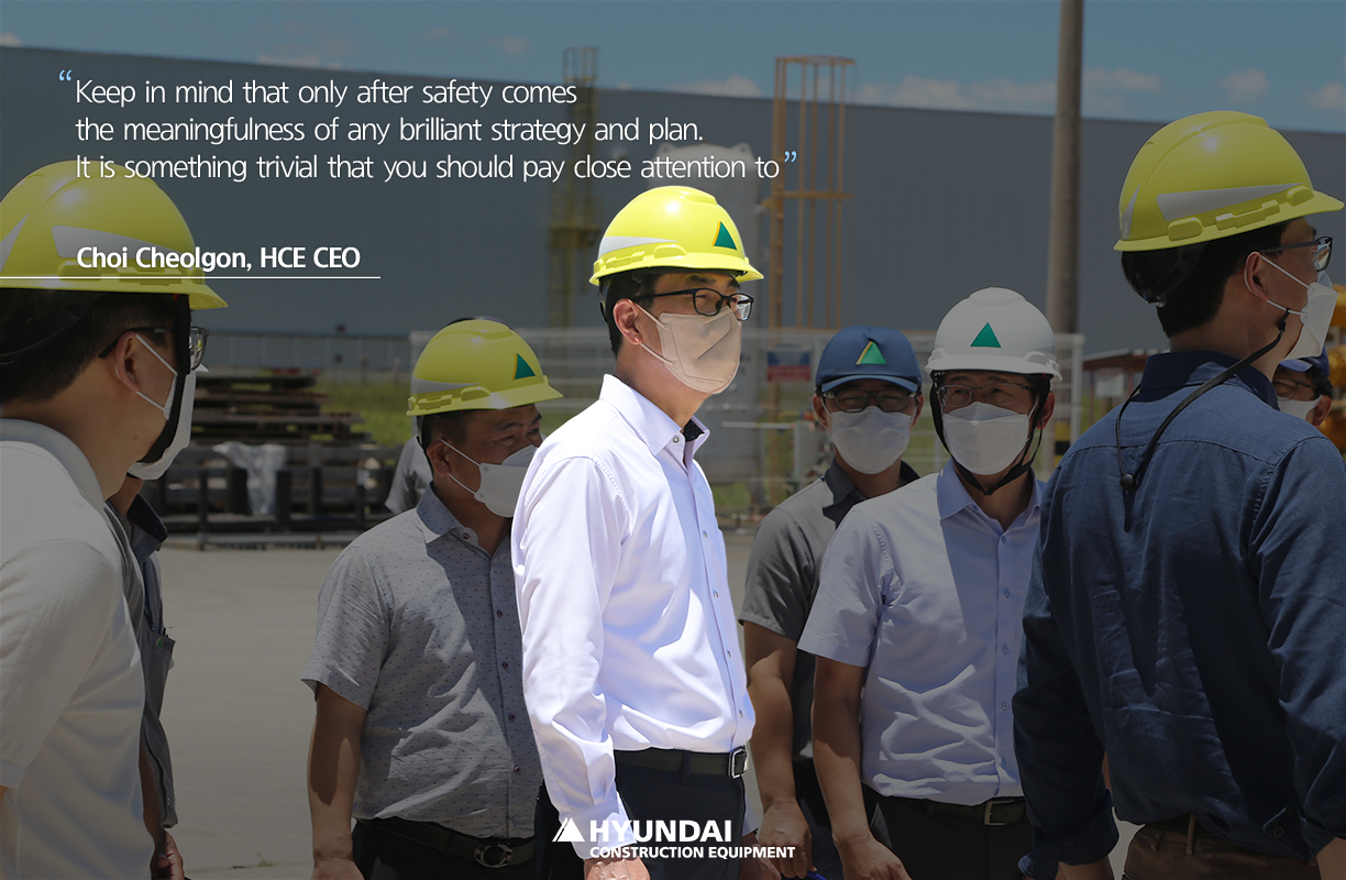 Hyundai Construction Equipment has been striving to build a safety culture in the company. Building on the ISO 45001, the international standard for occupational health and safety, the company has been conducting numerous activities that promote a safety culture based on principles and responsibility as well as a health and safety system focusing on participation and prevention.