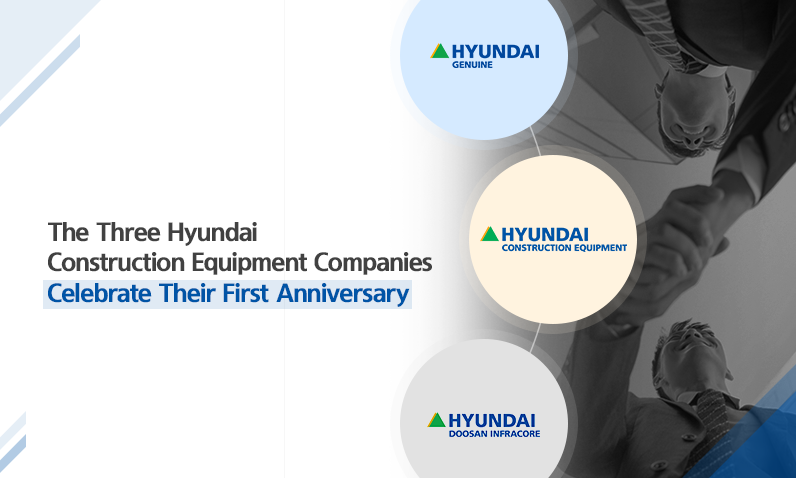On August 19th, the three Hyundai construction equipment companies (Hyundai Genuine, Hyundai Construction Equipment, and Hyundai Doosan Infracore) gathered to celebrate their first anniversary. Reflecting on their first year, the three companies revised their mid- and long-term strategy. We provide you with what brave plans the three devised to become one of the global top 5 companies with this news.
