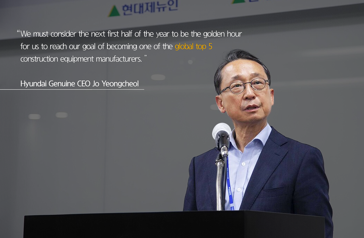 “If you want to go fast, go alone; if you want to go far, go together.”—a famous African maxim. Hyundai Construction Equipment, Hyundai Genuine, and Hyundai Doosan Infracore understand the maxim more than anyone else, experiencing for the past year the value and power of going together. Through intricate cooperation in every aspect of operation including purchasing, technology, etc., the three companies will become one of the global top 5 construction equipment manufacturers and leap towards a top-tier construction equipment maker.