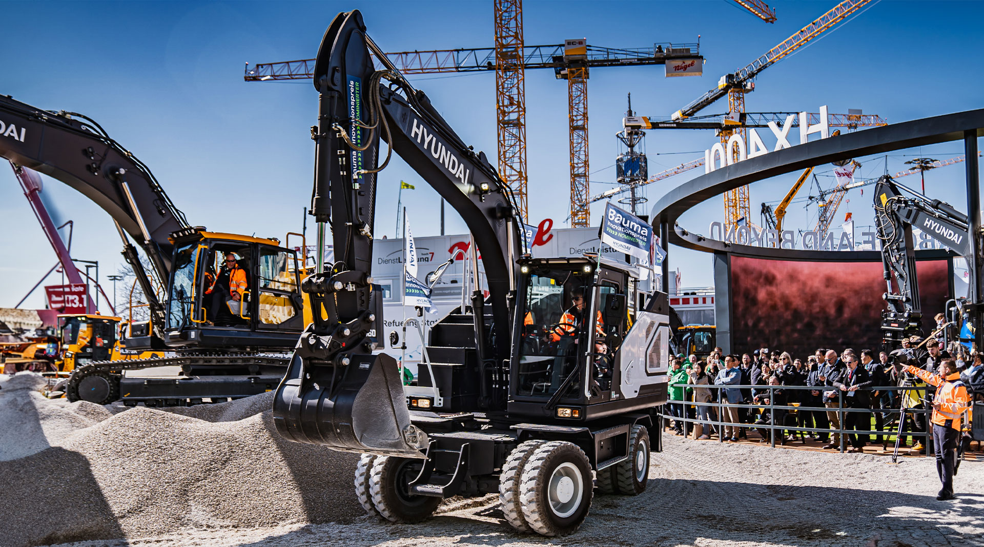 HD Hyundai Equipos de Construcción ha participado continuamente en la Feria BAUMA de Munich, Alemania, una de las 3 principales ferias de maquinarias de construcción del mundo y presenta al mercado internacional tanto soluciones inteligentes de construcción como equipos y tecnologías de vanguardia, incluyendo paquetes de energía de celdas de combustible de hidrógeno y packs de batería eléctrica, excavadoras de hidrógeno y eléctricas, cargadores de ruedas, autovolquetes, etc.