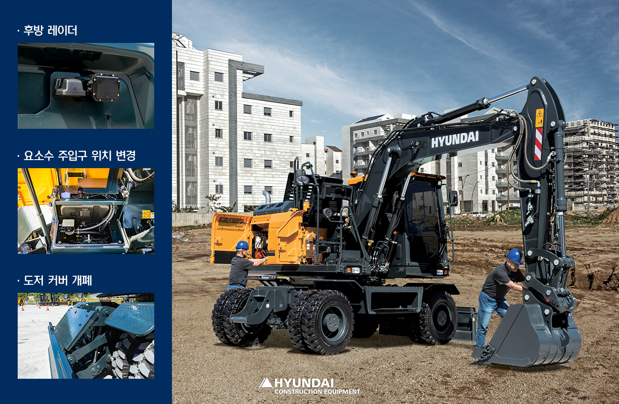 현장 작업에서 가장 중요한 부분은 시야 확보라 해도 과언이 아닙니다. 바로 안전과 직결되는 부분이기 때문인데요. 현대건설기계는 이 부분을 고려하여 운전자의 시야 확장을 위한 여러 가지 업그레이드 사항을 적용했습니다. 캐빈의 위치는 120mm 전방으로 이동하여 우측 시야 및 장비 하단 시야성을 개선하였으며, 와이퍼 또한 상·하단 모두 잘 닦이는 수평형 와이퍼로 변경하여 먼지가 많은 작업장이나 상향 작업 시행에도 선명한 시야 확보가 가능하도록 했습니다.