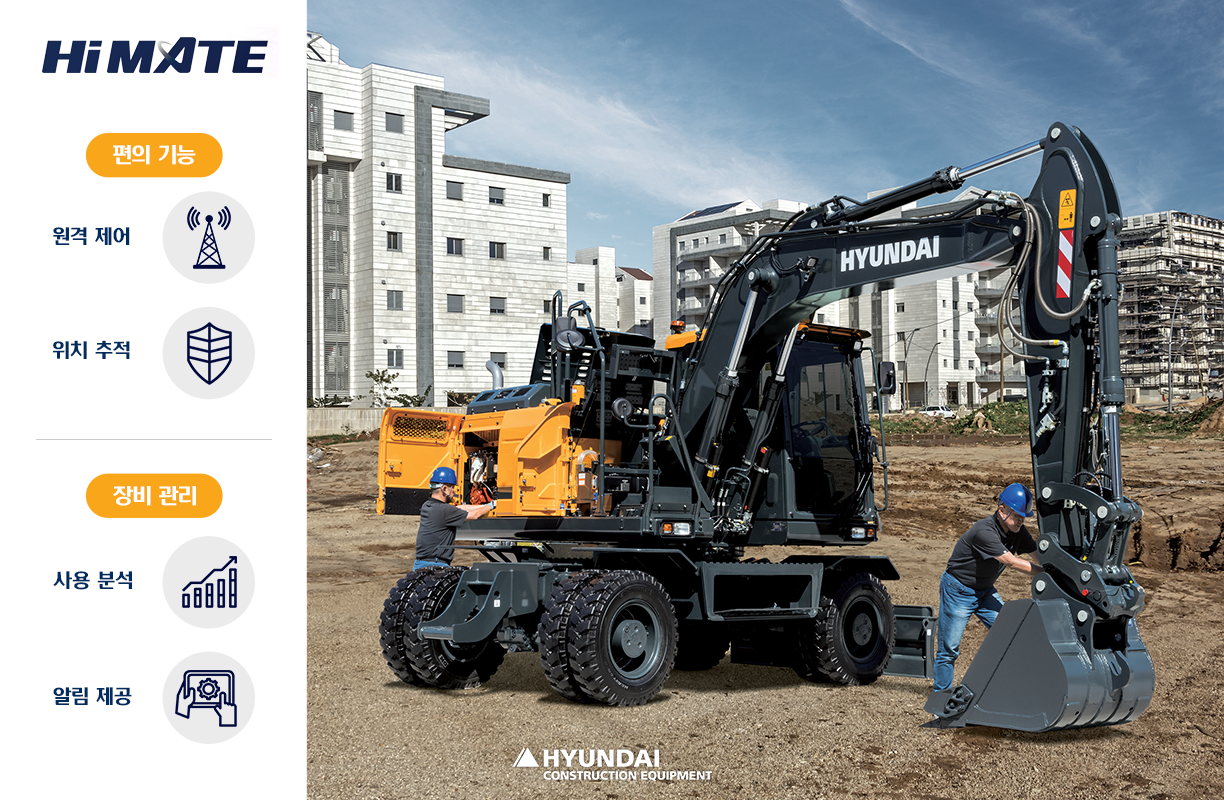 HW155A에는 휴대폰 통신망을 통해 장비의 가동 상태와 이상 유무, 주기적 관리가 필요한 소모품 정보 등을 확인하고 관리할 수 있는 최신 기술, Hi MATE가 적용되었습니다. Hi MATE는 시간과 공간적 제약 없이 현장에서 가동 중인 장비 현황을 파악하고 서비스 선택과 함께 장비 관리까지 가능한 획기적인 기술인데요. Hi MATE가 제공하는 다양한 편의 기능과 장비 관리 서비스를 통하면 장비 생산성을 획기적으로 높일 수 있습니다.