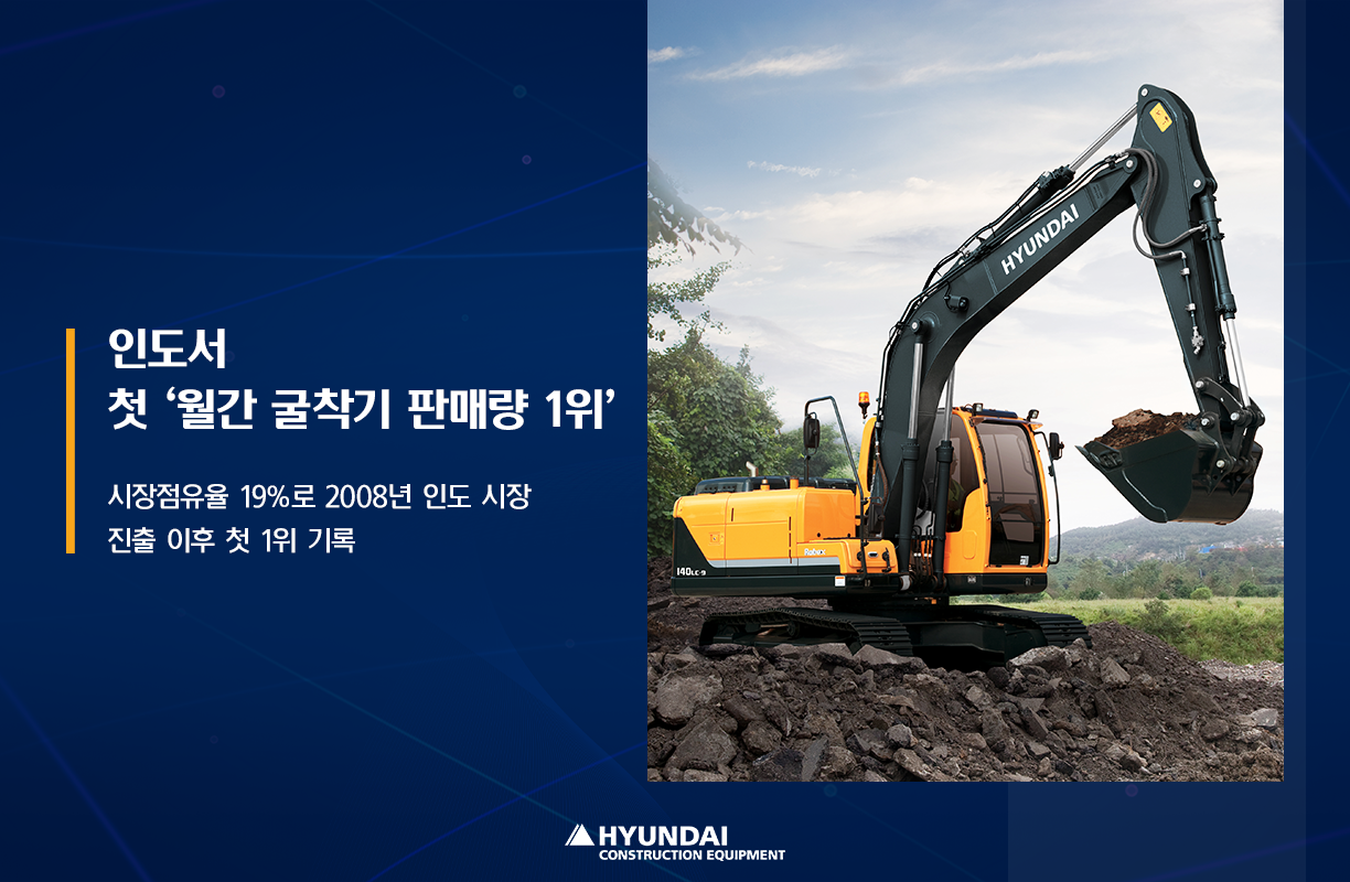 현대건설기계가 올해 인도 시장에서 월간 굴착기 판매량 1위를 달성했습니다. 이는 2008년 인도 시장에 진출한 이후 14년 만에 이룬 기록적 성과인데요. 현대건설기계는 올해 4월 총 382대의 굴착기를 판매하며 19%의 높은 시장점유율을 기록, 인도 시장에서 이미 높은 인지도를 확보하고 있는 일본 업체와 가격 경쟁력을 무기로 한 중국 업체들을 제치고 판매량 1위에 올랐습니다.
