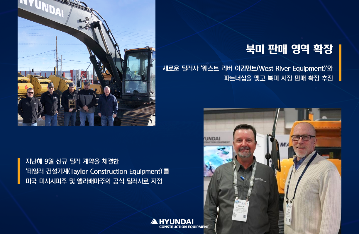 현대건설기계는 올해 1분기 북미 시장에서 1,373억 원의 매출을 올리며 전년 동기 908억 원 대비 51.21%의 성장세를 기록 중입니다. 현대건설기계는 이 같은 북미 시장에서의 선전을 이어가기 위해 북미 지역 딜러사들과 파트너십을 맺으며 판매 영역 확장에 돌입했습니다.