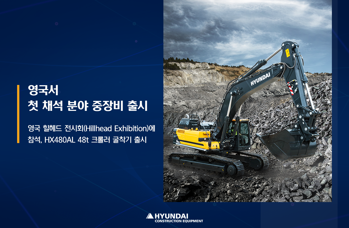 힐헤드 전시회에서 공개된 HX480AL은 유럽 배기가스 규제(EU STAGE V) 기준을 충족하는 고효율 친환경 엔진이 장착된 장비로, 환경 규제가 강화되고 있는 유럽 시장에 적합합니다. 현대건설기계는 이번 HX480AL 공개를 통해 영국 내 채석 시장 선점에 나설 계획인데요. 신규 장비 공개를 통한 판매 라인업 확대와 더불어 적극적인 영업 활동, 유통망 확장 등을 지속 추진해나갈 예정입니다.