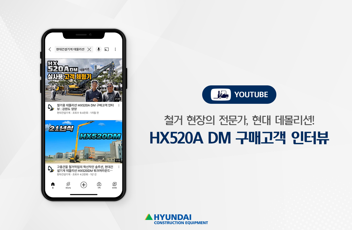 유튜브: 철거 현장의 전문가, 현대 데몰리션! HX520A DM 구매고객 인터뷰
