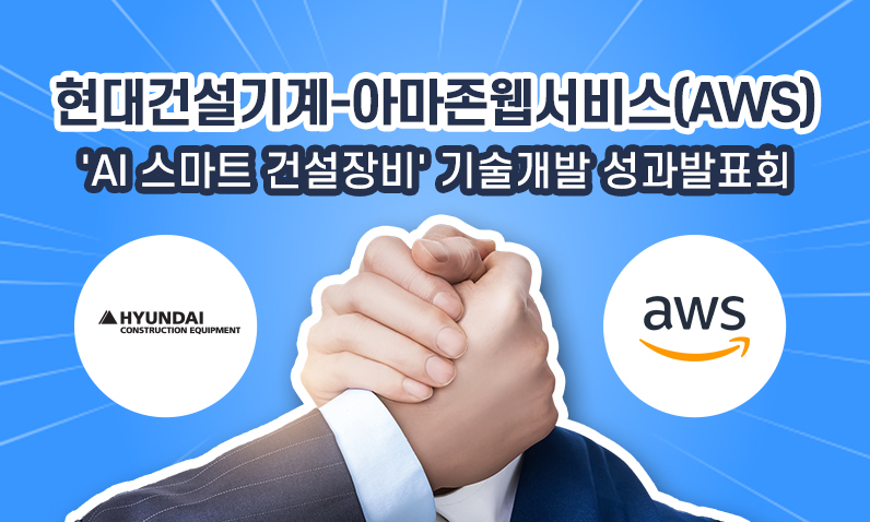 현대건설기계는 5월 17일 AWS와 함께 ‘AI 기술협력 성과발표회’를 개최하여, 인공지능(AI)을 활용해 건설장비 고장을 진단하는 기술을 공개하였습니다. 이를 통해 건설장비의 다운타임(장비 정지 시간)을 획기적으로 줄일 것으로 기대합니다.
