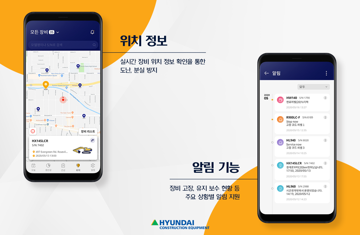 이밖에도 실시간 위치 정보를 확인할 수 있는 기능과 장비 고장, 유지 보수 현황 등 주요 상황별 알림 기능을 지원합니다. 스마트폰과 연동된 편리성으로 장소와 시간에 구애받지 않고 실시간 장비 관리가 가능한 하이메이트 플릿 매니저는 iOS와 Android 앱 스토어에서 만나볼 수 있습니다.