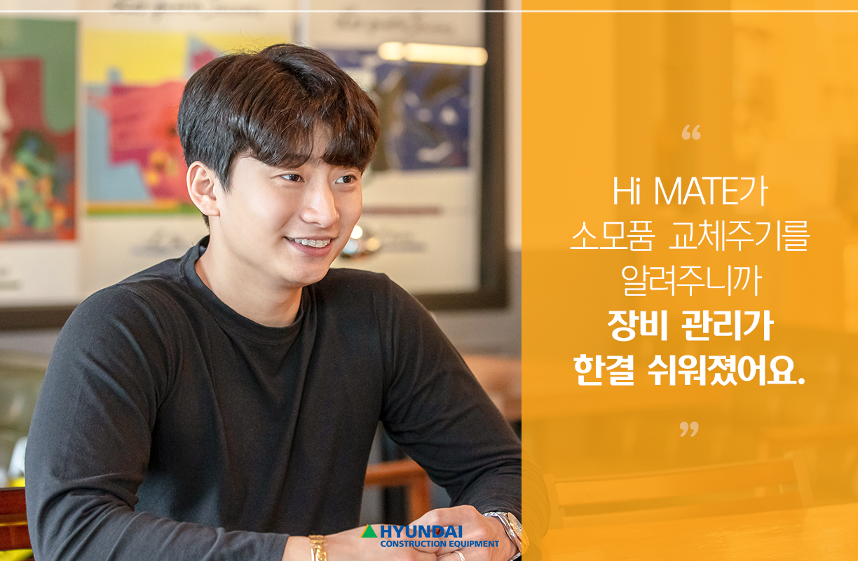 “하이메이트는 저같이 장비 운전 경력이 얼마 되지 않은 분들에게 특히 도움이 될 것 같습니다. HW145+는 저의 2번째 장비인데요, 첫 장비를 탈 때만 해도 장비 관리에 굉장히 서툴렀습니다. 기본적인 장비 관리법도 잘 몰랐고, 소모품 교체 주기를 놓치는 일이 잦아 장비 고장도 많이 냈었죠. 그런데 하이메이트를 사용하고부터는 이런 일이 줄었어요. 소모품 교체 주기를 알려주니까 장비 관리가 한결 쉬워졌습니다.