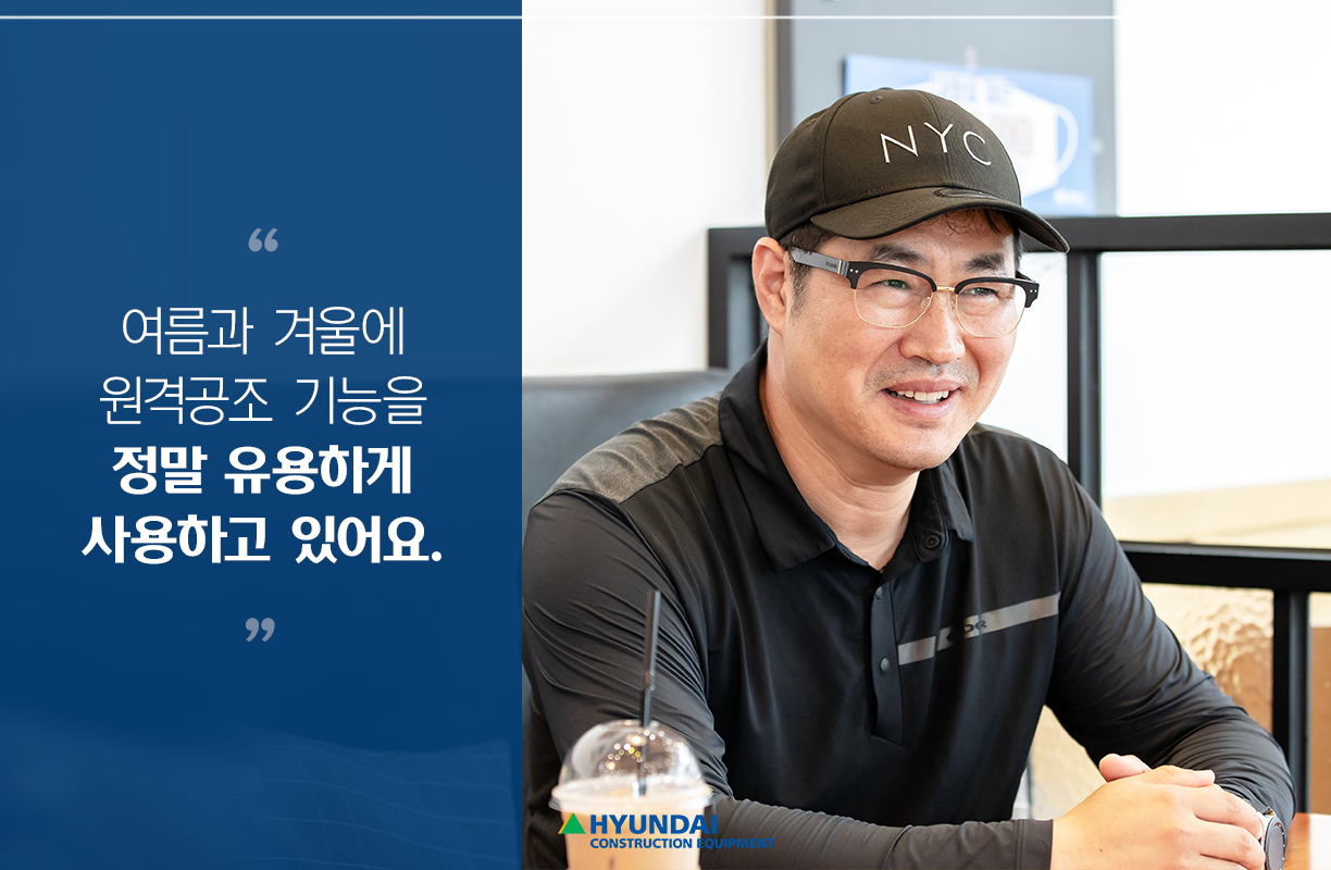 20년 동안 현대건설기계 장비를 이용해 오면서 점점 발전하고 있음을 체감합니다. 장비 성능도 AS 서비스도 너무나 만족스러운데요. 딱하나, 장비 가격만 조금 더 저렴 해졌으면 좋겠다는 바람입니다(웃음)