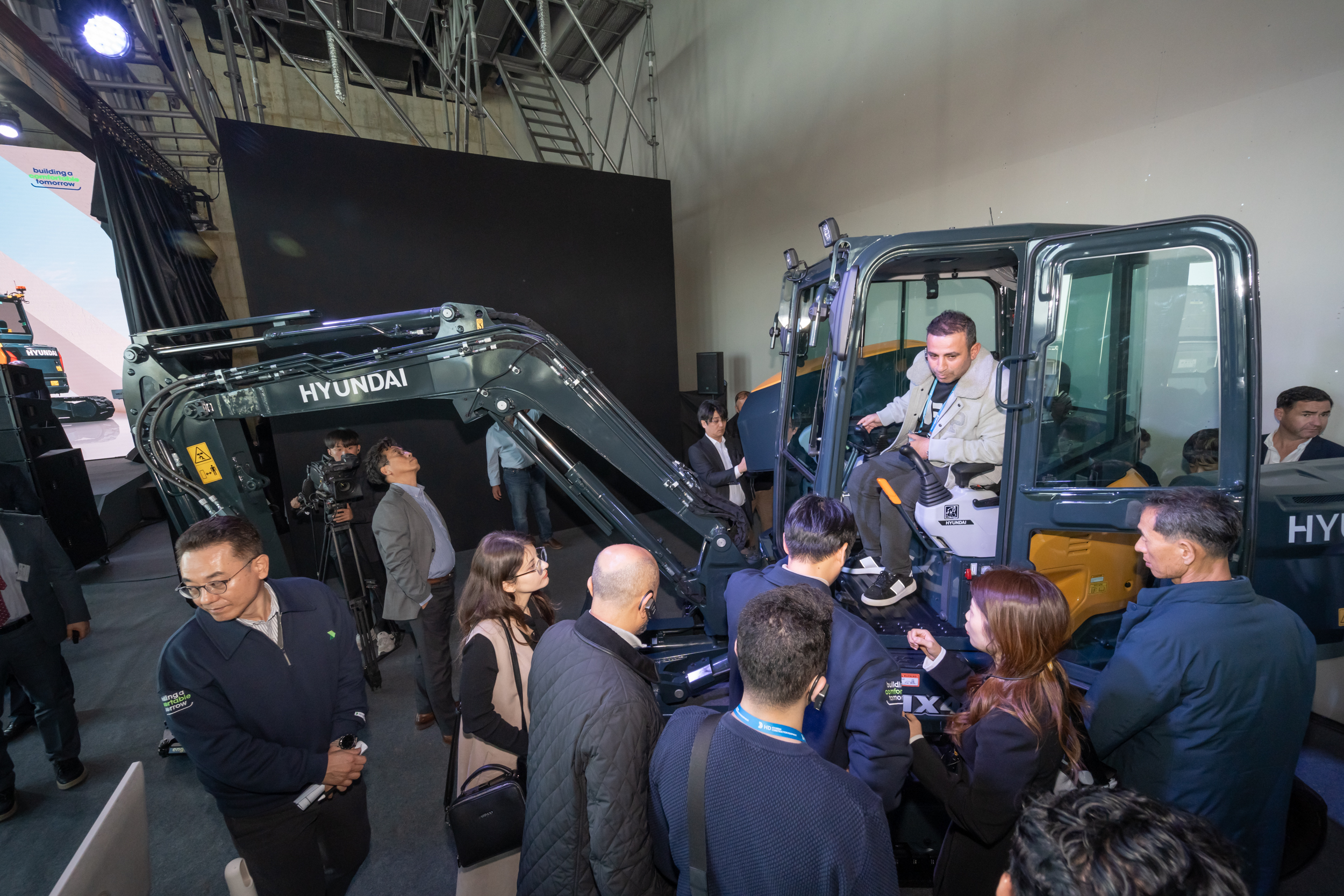 ■사진설명2: HD현대건설기계가 8일 개최한 '신규 미니굴착기 7종 글로벌 론칭행사'에서 15개국 법인 주재원, 딜러, 협력업체 관계자들이 신제품을 직접 체험해보고 있다