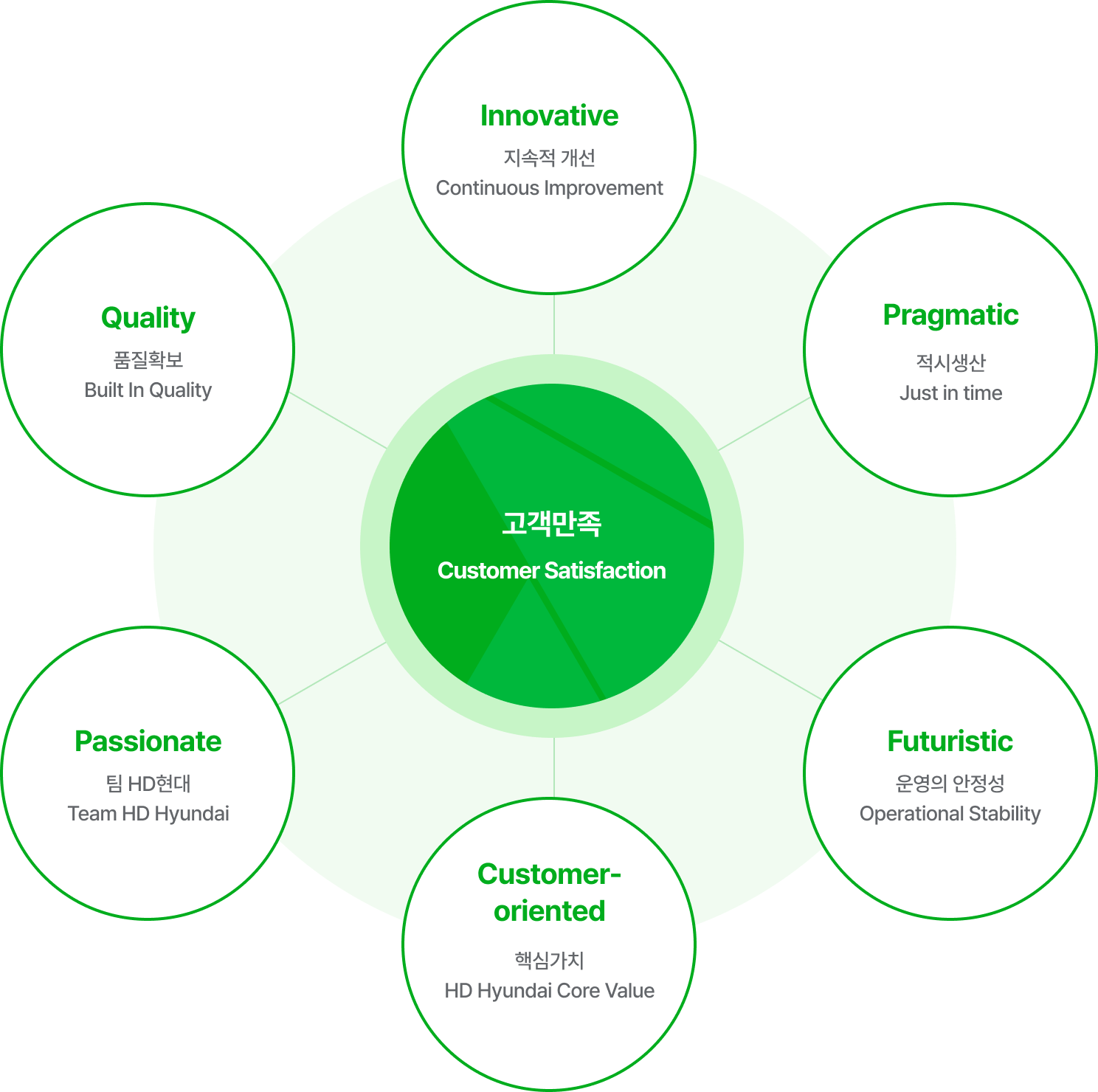 품질은 결코 양보할 수 없는 HD현대건설기계의 최우선 가치입니다. 특히 고객 신뢰에 부합하고자 실시간 품질 모니터링 및 정량적 지표 관리를 기반으로 체계적인 관리 시스템을 운영하고 있으며, 품질확보센터 운영 및 품질실패비용 최소화 등을 추진하며 품질 경쟁력 강화에 전사적인 역량을 집중하고 있습니다. 글로벌 품질 정보는 일 단위로 판정하여 사내 전 부문이 실시간 공유 하고 있습니다. 보다 큰 고객 만족을 위해 한국, 북미, 유럽, 중국, 인도, 브라질, 신흥시장 등 주요 지역별 품질 포스트(Q-Post)를 선정하고, 기종별 전문가의 정보 분석을 통해 지역/기종 매트릭스 체계를 운영하여 시장 요청사항에 실시간 대응하고 있습니다. 또한 디지털 품질 분석 보증체계를 확립하여 개선 기간 단축을 추진하고 있으며, 지속적으로 시스템을 개선하여 글로벌 시장에 선제적으로 대응하고 있습니다. 중장기적으로는 품질 개선 시스템을 고도화하여 고장발생 후 개선하는 것에서 한 걸음 더 나아가 사전에 고장을 인지하여 선제적으로 예방하는 사전 품질 활동을 추진하여 품질 경쟁력을 더욱 제고해 나가겠습니다.